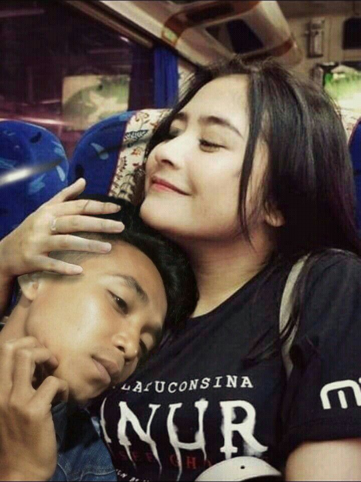 Dalam sebuah perjalanan di kereta api, seorang pria mengedit foto dirinya sedang bermesraan dengan Prilly Latuconsina. Mungkin saja pria dalam foto nampak lelah sehingga menaruh kepalanya di dada Prilly. So sweet banget.