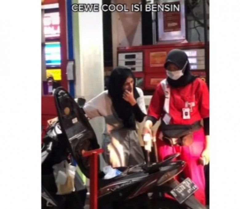 Viral seorang cewek hijab melakukan aksi nyeleneh saat mengisi bensin (tiktok.com)