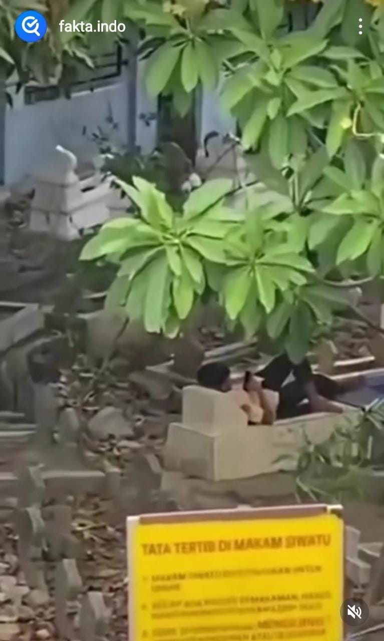 Tampak sebuah video unggahan akun Instagram @yogyakarta.keras memperlihatkan seorang bocah yang sedang duduk di kuburan.