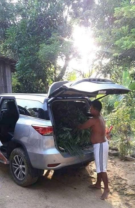 5. Nggak kuat beli traktor, jadi pake mobil yang ada di rumah aja deh..