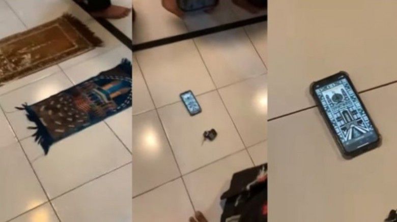 Dan ternyata, jamaah tersebut menggunakan sajadah virtual melalui aplikasi handphone-nya. Dirinya terlihat meletakkan HP-nya dalam kondisi layar sedang menyala dan menampilkan sajadah.