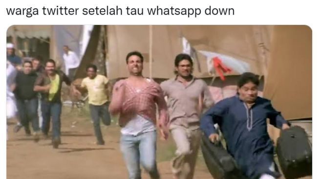 Tak sedikit meme kocak pun diunggah di Twitter. Seperti meme yang menunjukkan sejumlah orang berlari dengan caption WA error, hingga beberapa orang yang langsung ke Twitter mencari informasi.