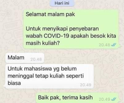 Cadas isi wanya, jadi auto masuk kuliah deh jadinya wkwkwkkw. Buru-buru deh di cancel agenda kepantai bareng doi wkwkwk.