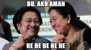 Meme ini ada hubungannya dengan meme nomor 2 tadi, ketika Megawati meminta agar Jokowi tidak melakukan reshuffle untuk Puan. Setelah jelas bahwa Puan tidak diganti, Puan mengatakan kepada ibunya, bahwa dirinya cukup aman sembari tersenyum bahagia. Ibu dan anak ini memang kompak banget ya.