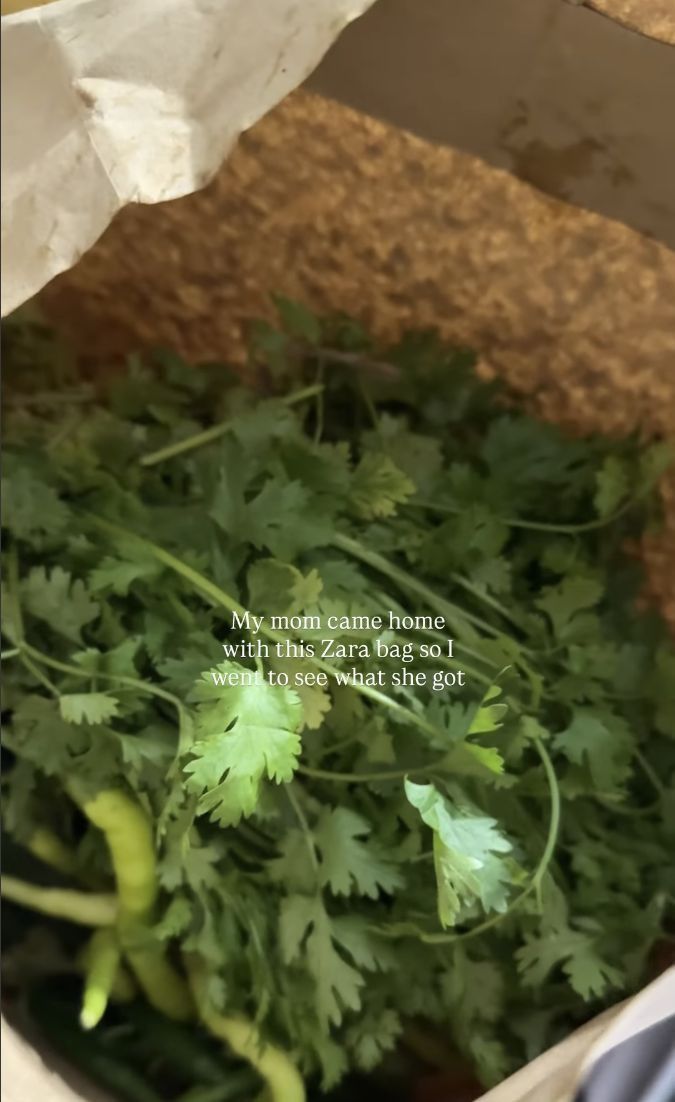 Seorang anak temui goodie bag merek Zara yang isinya daun ketumbar (instagram)