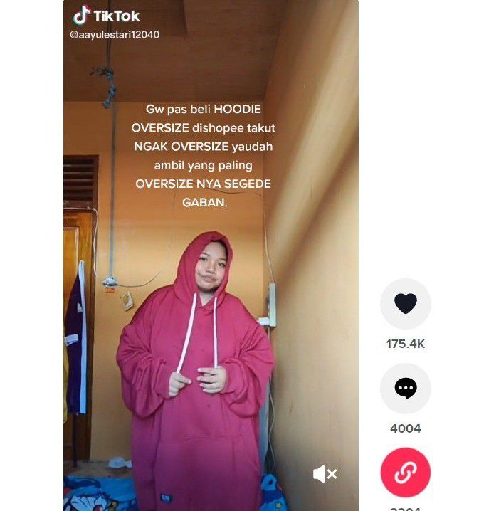 Heboh video cewek yang beli hoodie oversize kebesaran seperti daster (tiktok.com)