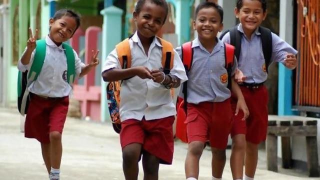 Anak-anak SD pulang sekolah dengan bahagia (liputan6.com)