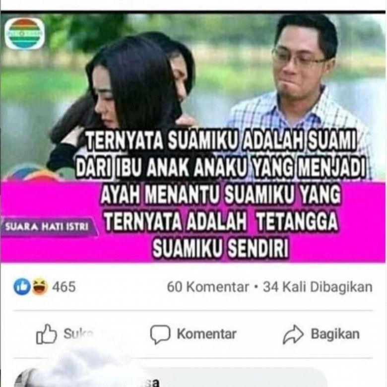 Viral FTV Suara Hati Istri di Indosiar menjadi program yang disukai banyak orang. Cerita-cerita yang mengangkat masalah rumah tangga menjadi salah satu kekuatan karena dekat dengan keseharian di Indonesia. Berikut 5 meme Suara Hati Istri yang bisa bikin penonton tertawa, biar nggak menangis terus.