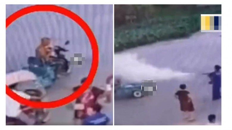 Sayangnya, ada orang yang masih nggak patuh. Hal ini kejadian di Tiongkok. Ada karyawan pom bensin yang nyemprotin air ke arah pria. Gara-garanya, pria ini merokok dekat pom bensin.