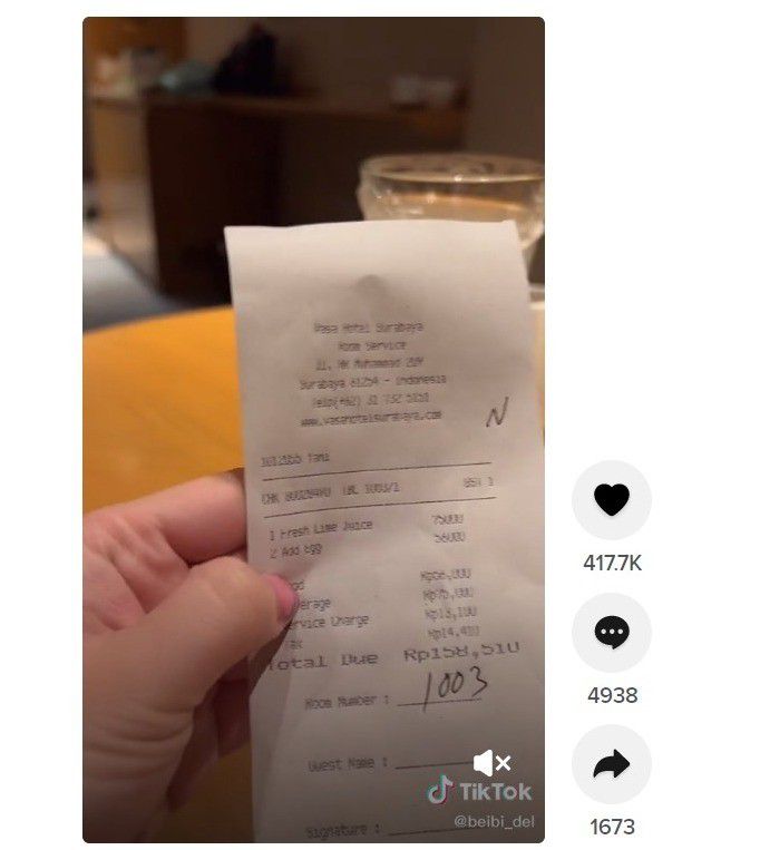 Seorang wanita syok saat tahu harga seporsi telor mata sapi yang dipesannya di sebuah hotel (tiktok.com)