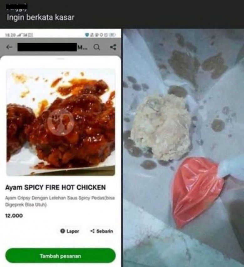 5. Kalau dengerin menu chicken spicy fire hot, yang muncul di bayangan pasti ayam dengan balutan saus warna merah, lekat, dan pedas. Tapi beda sama yang satu ini. Lah, yang dateng malah ayam berwarna pucat dengan saus warna pink. Waduh, jauh banget ya dengan fotonya.