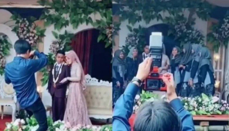 Heboh seorang fotografer pernikahan berpose di panggung pelaminan yang cukup bikin was was (tiktok.com)