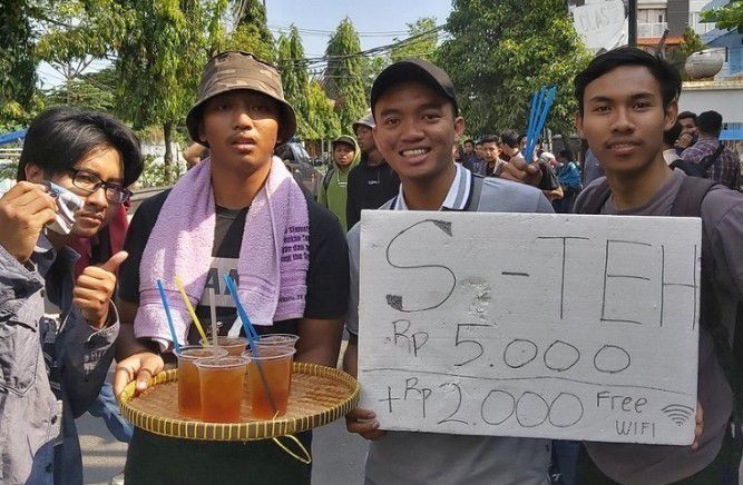 Jual es teh plus Free Wifi, emang kelakuan mahasiswa jaman now wkwkwk.