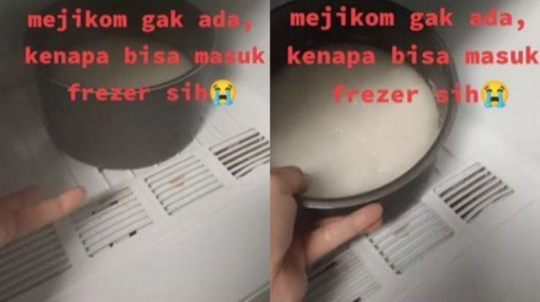 "Malamnya masak nasi nggak dicekrek (tombolnya), masih mentah, aku masak lagi, pas mau makan buka mejikom ko nggak ada, taunya di freezer," tulis pemilik akun di kolom komentar.