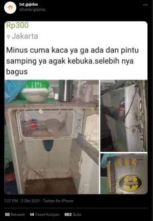 Viral seorang warganet jual kulkas bekas seharga Rp300 perak (via twitter)