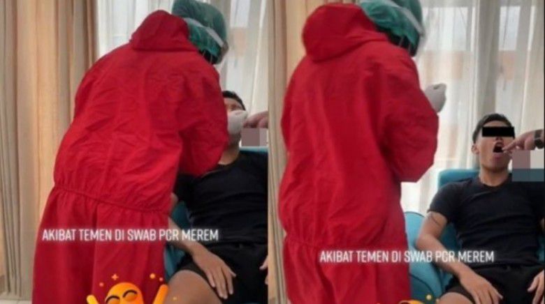 "Akibat temen diswab PCR merem," tulis keterangan video.