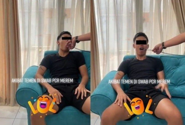 Viral video pria yang sedang tes swab PCR, temannya malah memasukkan sebuah benda ke mulutnya (tiktok.com)