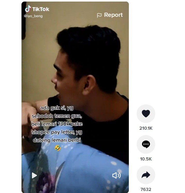 Video kocak tersebut awalnya dibagikan oleh pengguna TikTok @iyo_beng. Dalam video yang berdurasi 13 detik itu, ia merekam aksi temannya yang membeli lemari Barbie dan sontak membuat para warganet ikut tertawa.