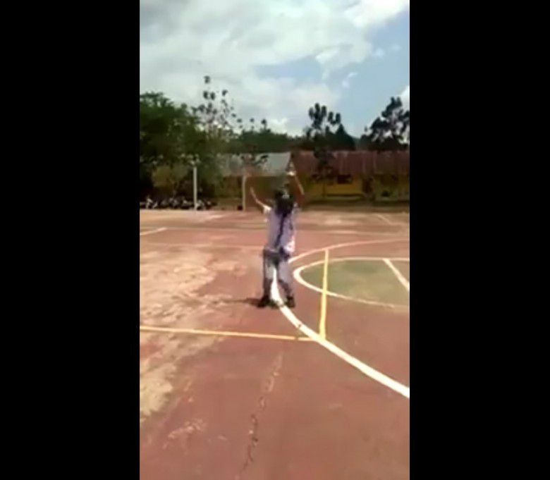 Melalui jogetan ini, anak SMA tersebut seperti ingin menggoda teman-teman sekitarnya. Hingga akhirnya salah satu teman jengkel dan melempar tas kecil ke arahnya.