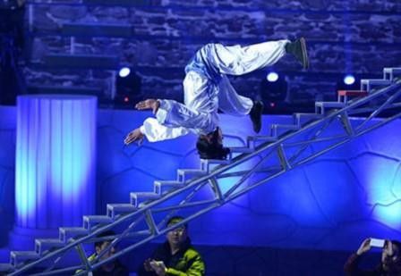 Sayangnya, kebolehannya ini didiskualifikasi. Soalnya, ada momen ketika Li sempat menyentuh anak tangga dengan bagian tubuh lain selain kepala.