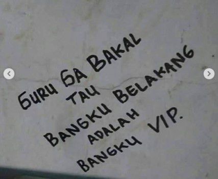 Emang bener banget, bagi anak-anak sekolah kenikmatan bangku belakang itu banyak, bisa tiduran, bisa main game dan ngapa-ngapain gitu, tapi ga nulis beginian juga kali di tembok kelas wkwkw.