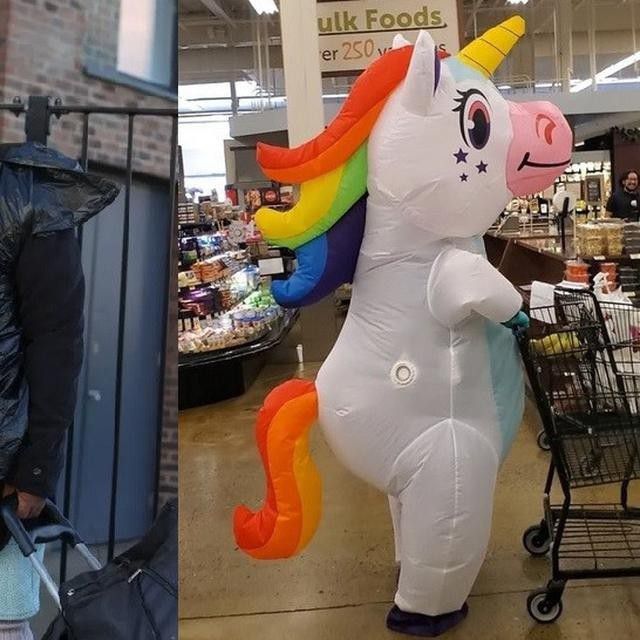 Gak mau kalah, ada juga sosok kuda poni, eh pegasus imut yang muncul dipusat perbelanjaan. Ya alasannya juga sama, menghindari corona gitu.