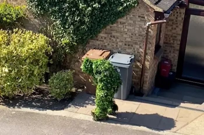 Ya cuma dia yang takut kena tegor saat daerahnya di isolasi, akhirnya orang ini tak habis akal dan menyamar menjadi tumbuhan wkwkwkwk. Gokil.