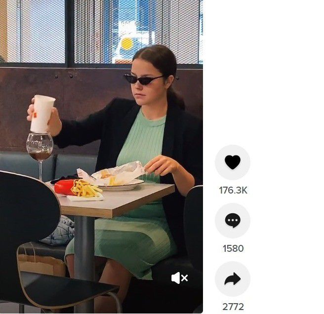 Viral wanita makan di restoran cepat saji dengan cara unik (via tiktok)