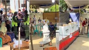 Sebuah video viral memperlihatkan seorang wanita yang baru saja menggelar akad nikah, datang ke Tempat Pemungutan Suara atau TPS.