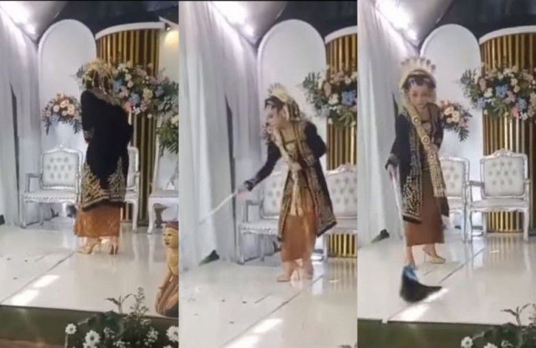 Viral pengantin wanita yang malah sibuk menyapu panggung pelaminan saat hari pernikahannya (instagram.com)