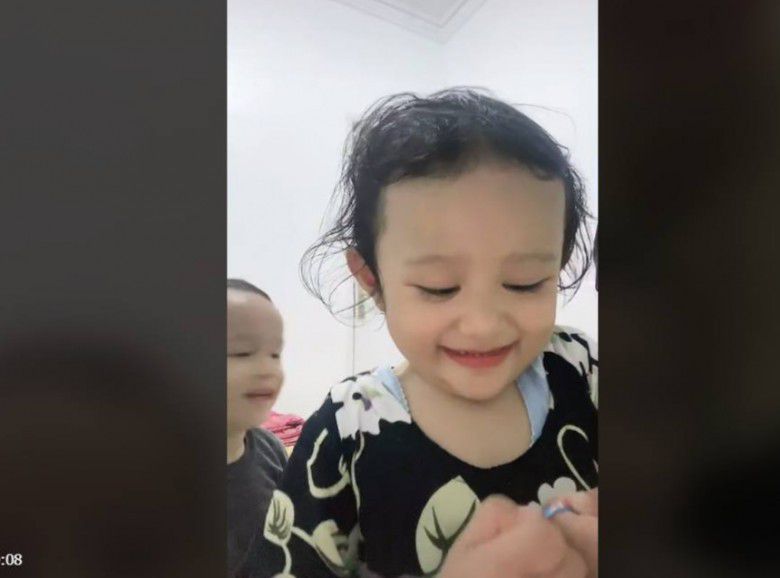 Namun, bocah perempuan dalam video itu malah mendekatkan dirinya ke kamera dan ikut tertawa lepas.
