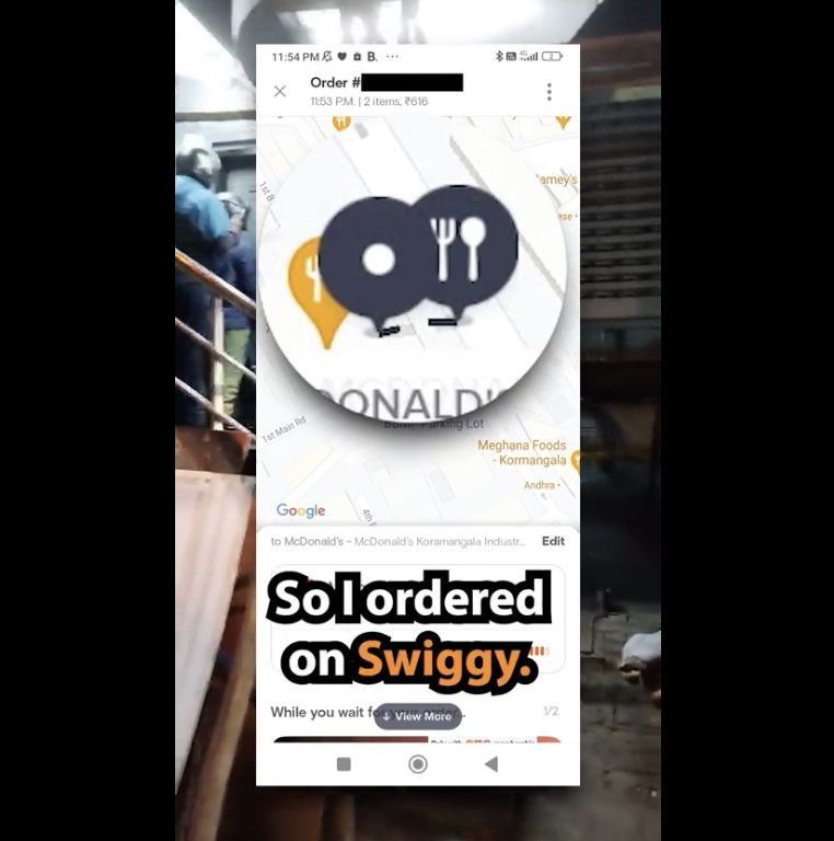 Friesen pun akhirnya membuka aplikasi pemesan makanan online di India, Swiggy, dan memesan menu McD yang ia inginkan. Kebetulan, gerai yang dituju iala gerai yang sama dengan lokasinya kala itu.