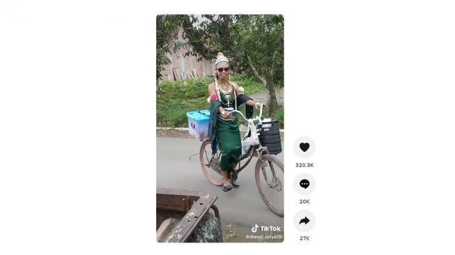 "Ratu pantai selatannya datang," ucap penjual gorengan tersebut seraya menghentikan laju sepedanya di depan pemilik akun.