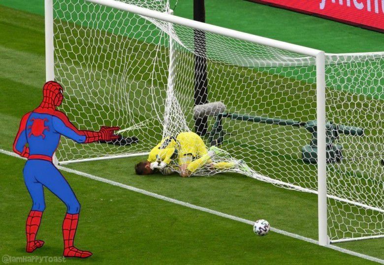 1. Pasti kamu ingat saat momen dimana kiper Skotlandia kebobolan dari tengah lapangan. Posenya kayak dijerat jaring Spider-Man.