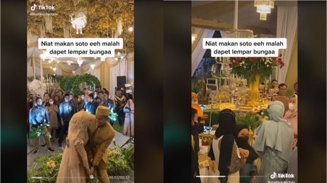 Video lucu tersebut diunggah oleh akun TikTok bernama @malikentertain dan sontak menjadi viral di media sosial. Di video tersebut, tampak para tamu sudah berkerumun di belakang pengantin.