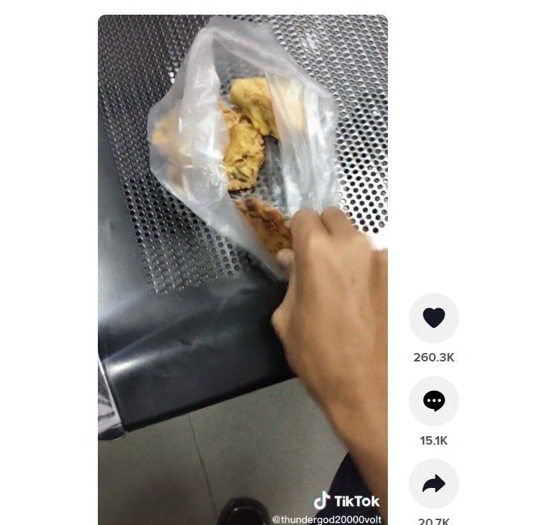 Kocak, seorang pria makan gorengan bakwan yang benar-benar keras seperti pakai tepung titanium (tiktok.com)