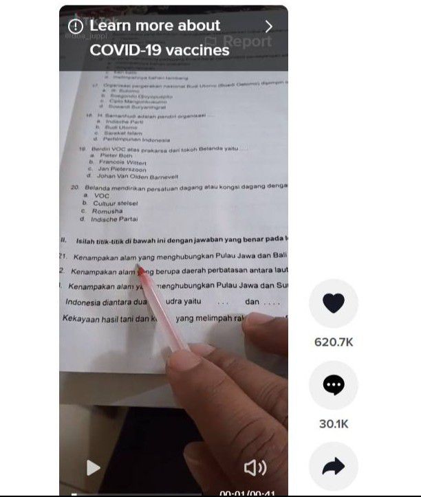 Video yang diunggah akun TikTok @doa_juppi beberapa waktu lalu memperlihatkan seorang guru yang sedang memeriksa jawaban anak SD kelas 5. Lucunya, dalam lembaran itu, sang murid menjawab dengan jawaban yang tak terduga.