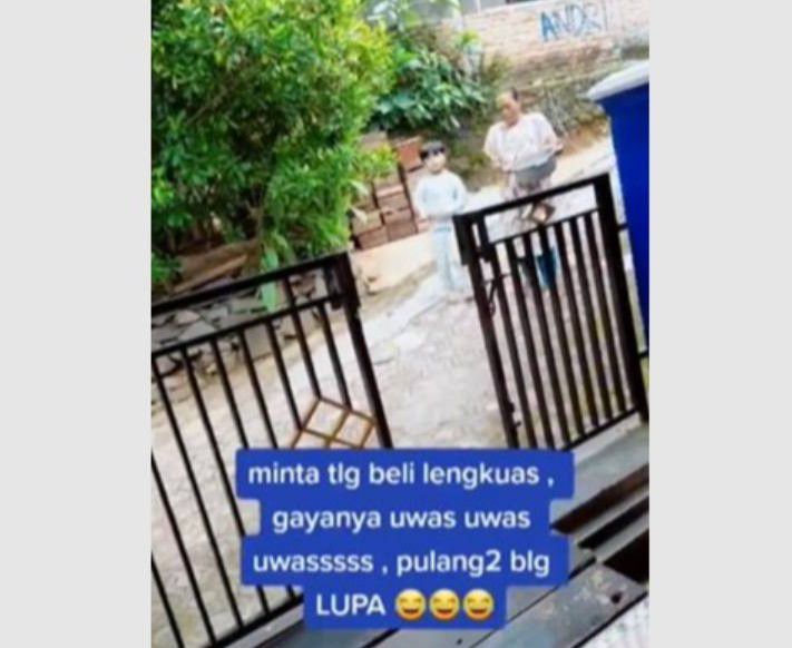 "Minta tolong beli lengkuas, gayanya uwas uwas uwas. Pulang-pulang bilang, lupa," tulisan keterangan dalam video seperti dikutip oleh Yoursay.id, Selasa (26/7/2022).