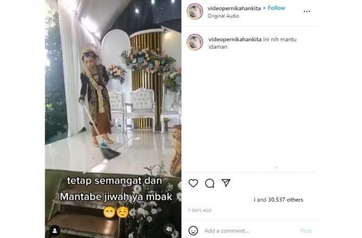 Viral pengantin wanita yang malah sibuk menyapu panggung pelaminan saat hari pernikahannya (instagram.com)