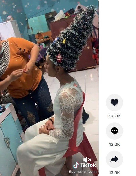 Viral rambut seorang perempuan disanggul berbentuk pohon natal (tiktok.com)