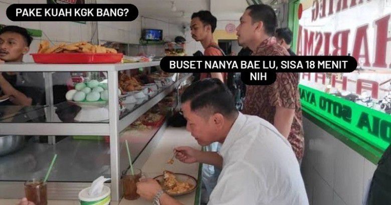 Yang satu ini juga tak kalah kocak, pertengkaran antara pedagang yang banyak tanya dan pembeli yang dikejar waktu.