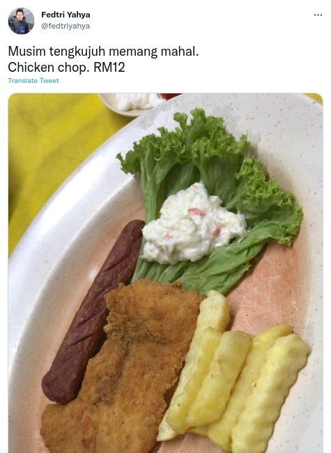 Dikutip dari Says (28/12), pria asal Malaysia bernama Fedtri Yahya baru saja memesan chicken chop. Makanannya dilengkapi dengan sosis, kentang goreng, ayam goreng, selada dan salad.