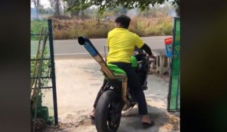 Ngakak, pengendara ini memodifikasi knalpot motor Kawasakinya sampai bikin wajah pengendara lain gagal glowing (tiktok.com)
