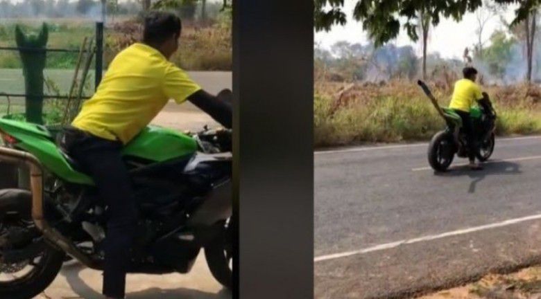Ngakak, pengendara ini memodifikasi knalpot motor Kawasakinya sampai bikin wajah pengendara lain gagal glowing (tiktok.com)