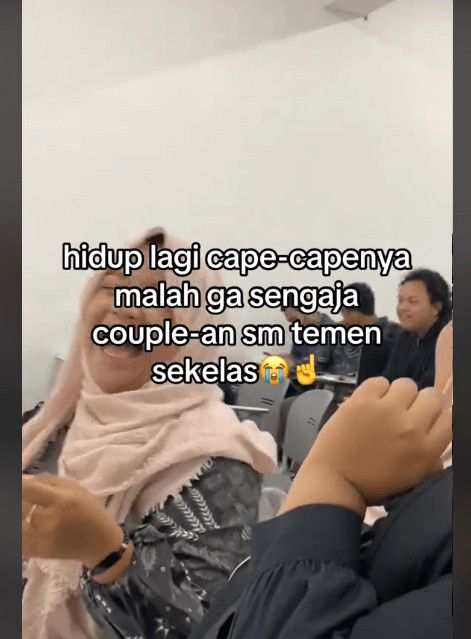 Di video itu, tampak teman-teman sekelasnya ikut tertawa. Lalu di akhir video, mereka pun foto bersama dan terlihat seperti pasangan yang pergi ke acara pernikahan dengan batik yang sama.