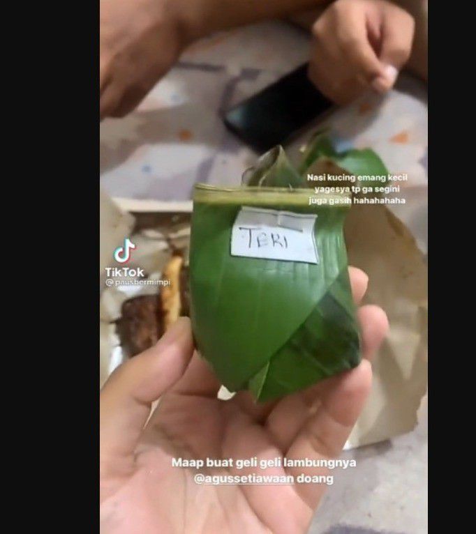 Pada sebungkus nasi kucing juga umumnya dilengkapi dengan ikan teri, udang rebon atau tempe orek dengan jumlah kecil. Tapi, pengalaman netizen yang mengunggah video di akun TikTok @pausbermimpi benar-benar tak terduga.
