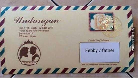 Pengantin yang akan menikah selalu mengirimkan undangan  kepada para tamu untuk hadir. Tapi ada saja undangan pernikahan  yang malah membuat para tamu jadi tertawa.