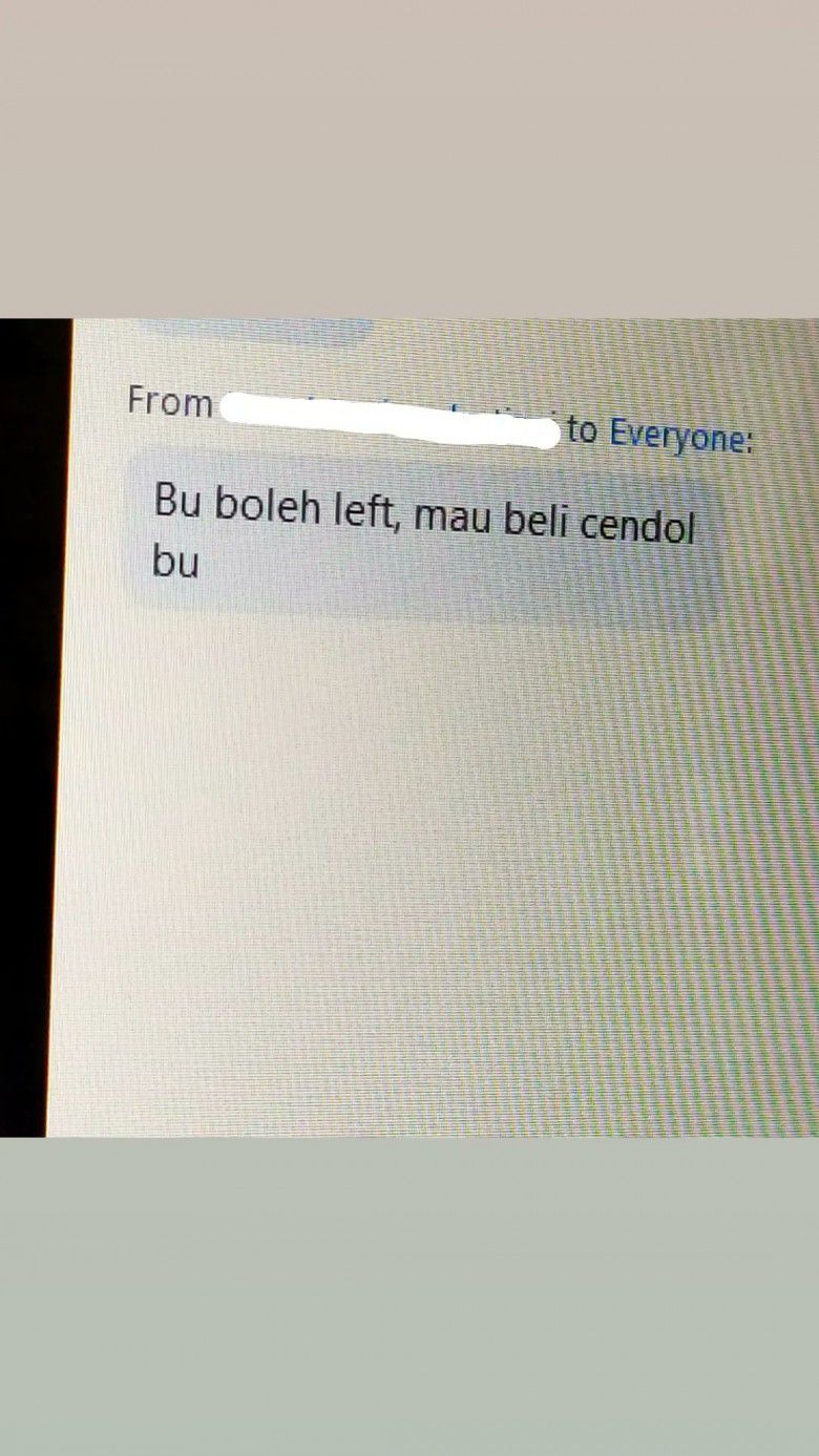 Dia bilang, mau pamit dari kelas online karena ingin membeli cendol.