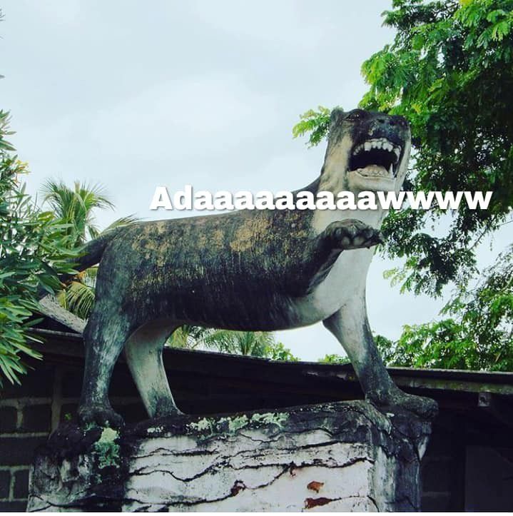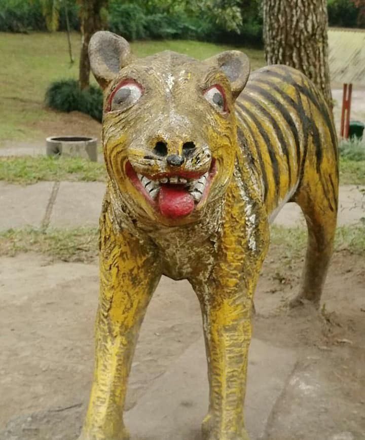 Lebih cenderung mirip kayak anjing laut ga sih ni kepala patungnya? Tapi yaboleh deh di sebut macan.