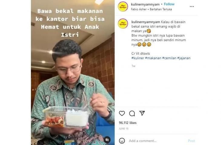Kocak, pria ini mengaku bawa bekal ke kantor untuk hemat, tapi endingnya malah bikin kesal warganet (instagram.com)